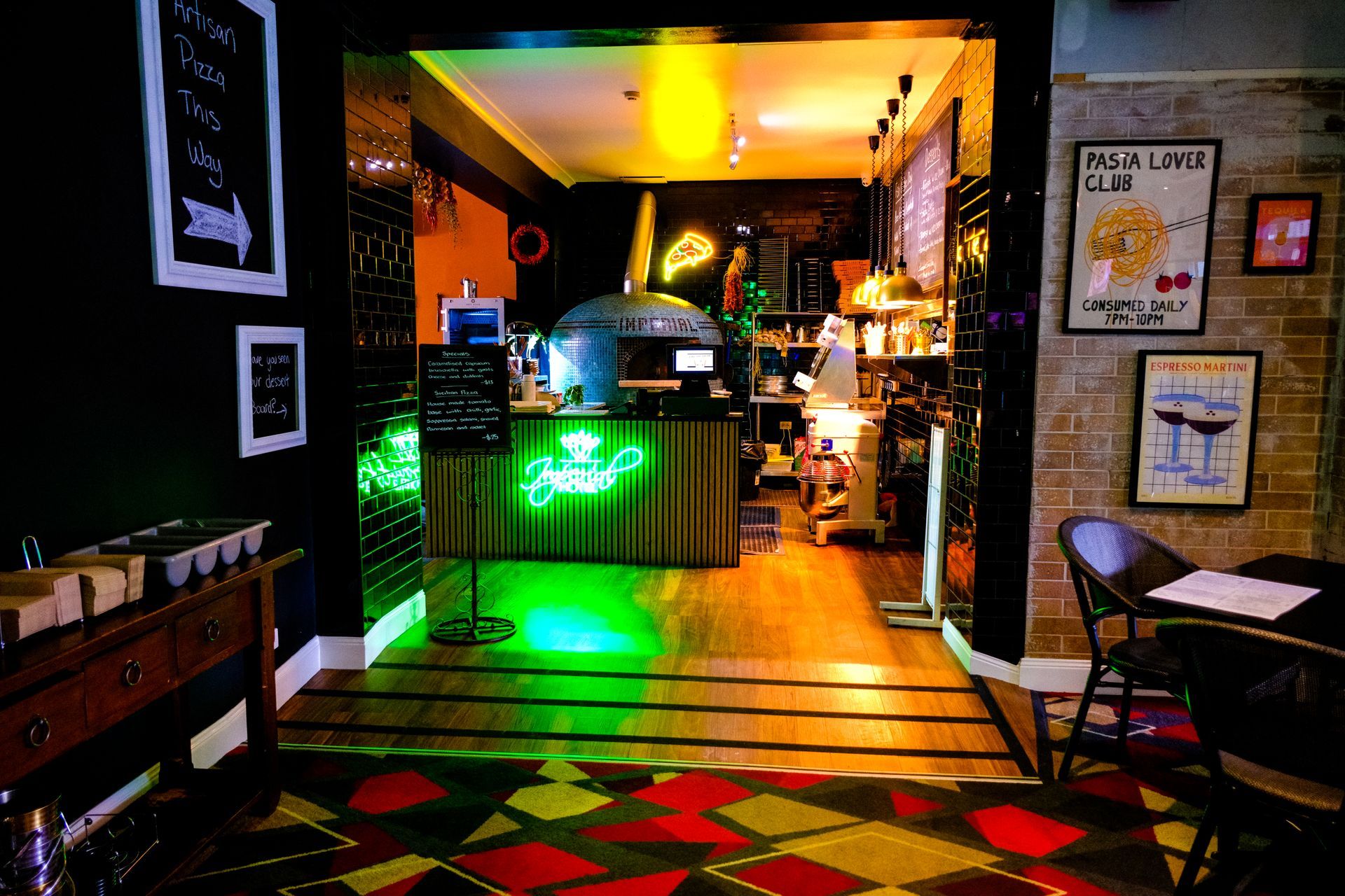 Richard updates his menu seasonally to incorporate the best available produce. The menu includes a large pasta and risotto section as well as pub favorite options including a larger than life steak sandwich.